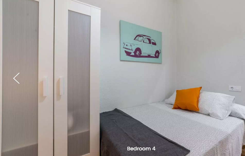 Habitación en apartamento de 6 dormitorios en la calle de l’Almirall Cadarso, en L’Eixample, está completamente amueblado. El apartamento tiene una amplia cocina equipada con 2 refrigeradores, generosas habitaciones dobles y suelos de baldosas. Hay 1 baño y un aseo adicional.