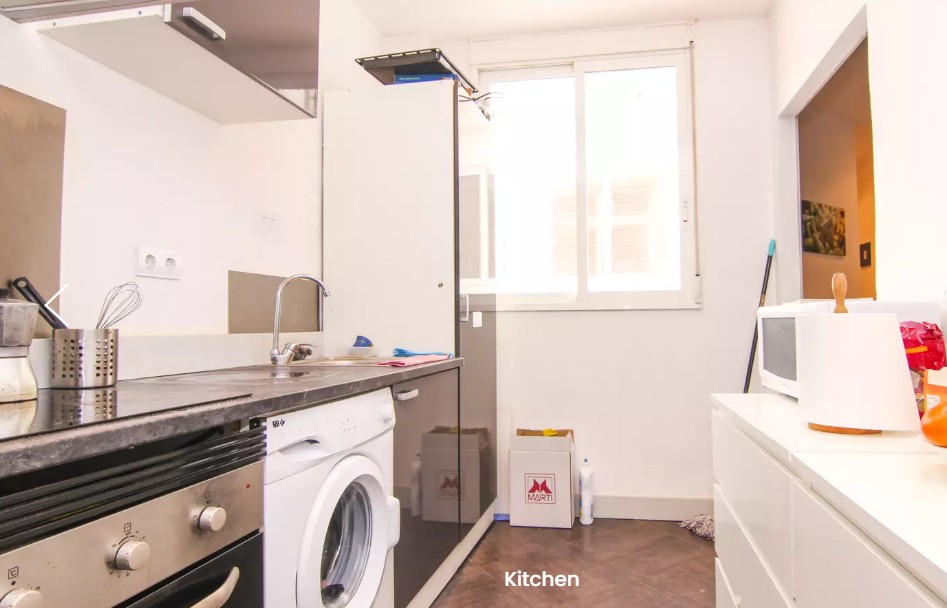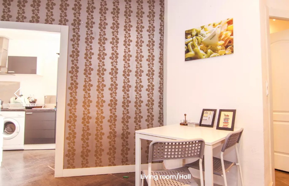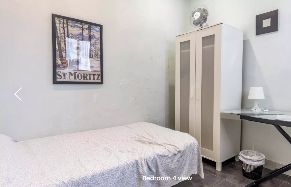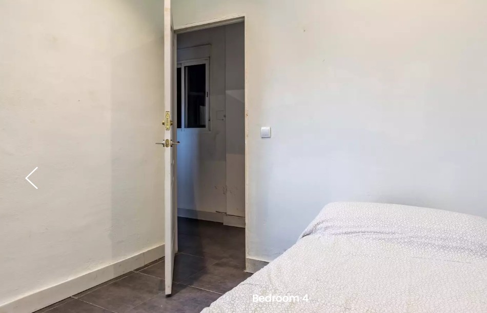 Habitacion en un segundo piso, apartamento de 6 dormitorios en Carrer De Castelló, Valencia. Está decorado con accesorios atrevidos que alegran el ambiente y crean un ambiente divertido y relajado.