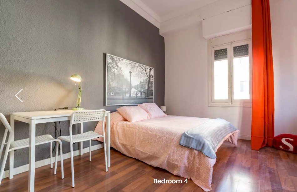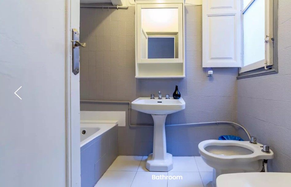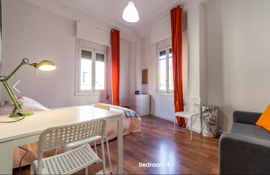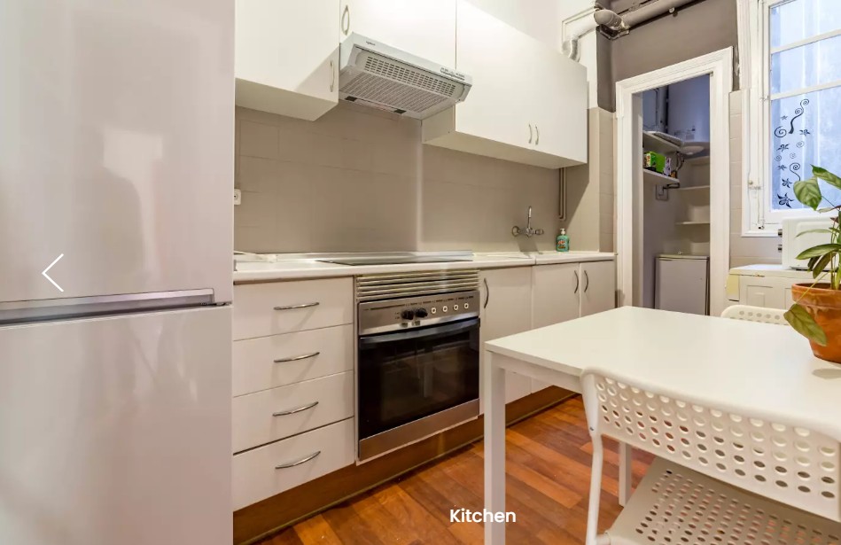 Habitación para alquilar en apartamento de 5 dormitorios y 1 baño, en Carrer de les Comèdies en Ciutat Vella. La cocina viene con horno, estufa de 4 quemadores y rangehood, así como una pequeña mesa y sillas y un espacio de almacenamiento. El baño también está bien equipado con una ducha sobre el baño, inodoro, bidet y lavabo.