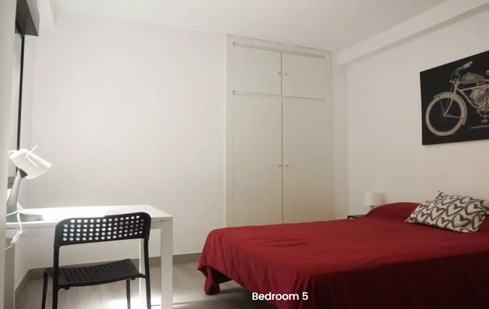 Habitacion en piso amueblado de 5 habitaciones en C/ Del Duc De Gaeta. La vivienda se encuentra en la 2ª planta de un edificio con ascensor. La propiedad incluye aire acondicionado.