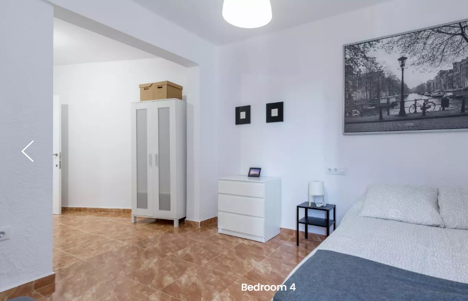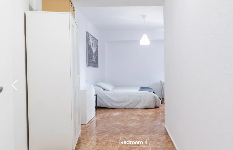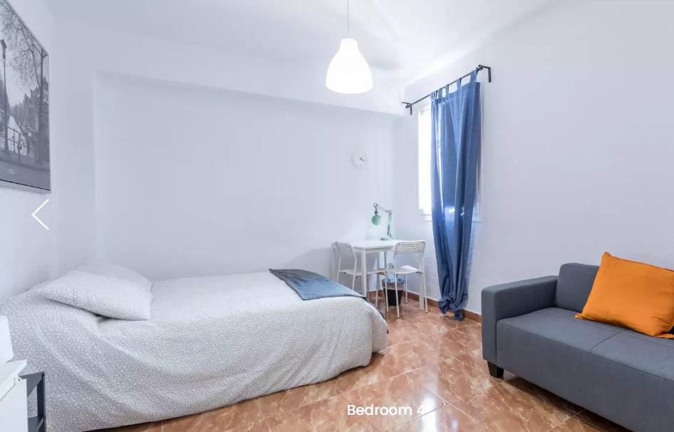 Habitación en piso compartido en calle Justo Vilar número 24. el piso se encuentra en una segunda planta, sin elevador, dispone de cama doble, armario, escritorio y mesita de noche. La vivienda consta de 4 dormitorios, cocina totalmente amueblada y equipada con electrodomésticos y un cuarto de baño completo. Está ubicada en el barrio del Cabañal, en zona muy bien comunicada y dotada de todos los comercios y servicios alrededor.