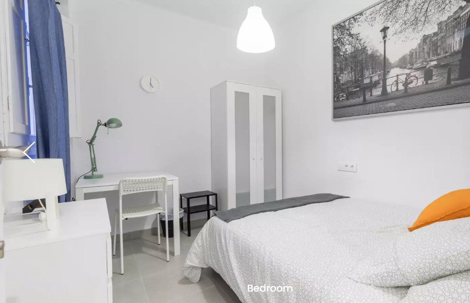 Dispone de cama doble, armario, escritorio y mesita de noche. La vivienda consta de 4 dormitorios, cocina totalmente amueblada y equipada con electrodomésticos y un cuarto de baño completo. Está ubicada en el barrio del Cabañal, en zona muy bien comunicada y dotada de todos los comercios y servicios alrededor.