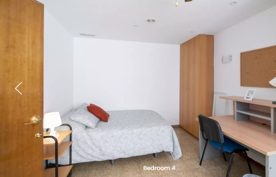 Se alquila habitación en piso compartido amueblado de 5 dormitorios en Valencia. La propiedad incluye balcón y aire acondicionado. Se encuentra en la primera planta de un edificio con ascensor.